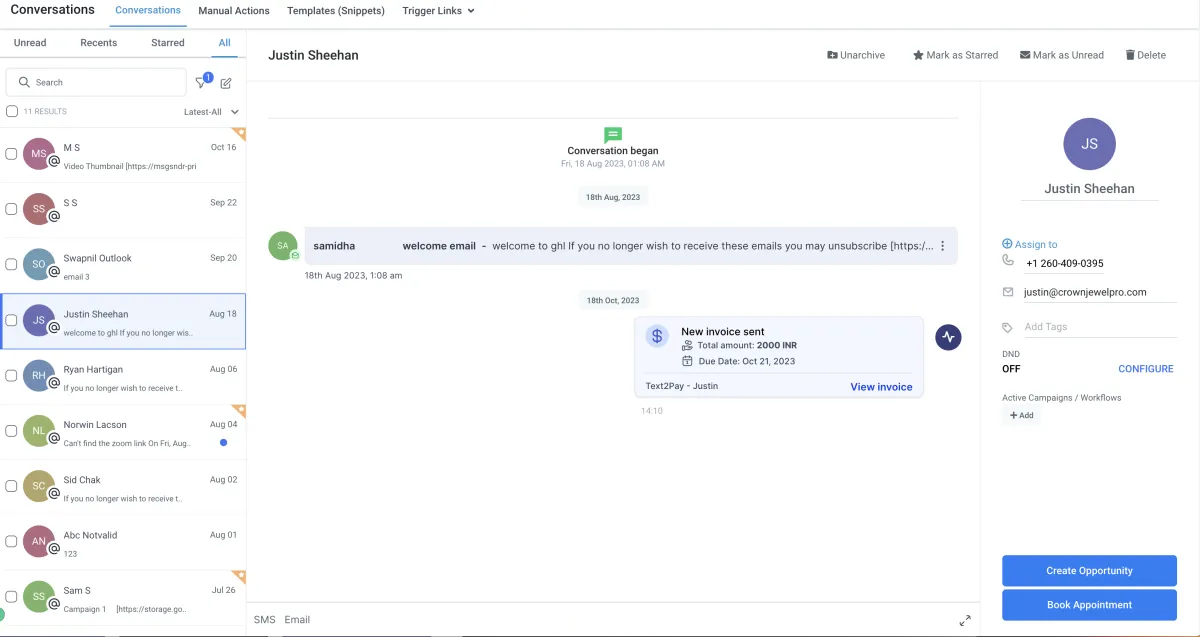 Diese Karten bringen die Aktion zu Ihnen. Sie können reagieren, bearbeiten und Möglichkeiten, Termine, Kontaktpräferenzen und Rechnungen verwalten, alles ohne den Aufwand, von einem Panel zum anderen zu wechseln. Das Ergebnis ist eine effizientere, mühelosere und flüssigere Benutzererfahrung.