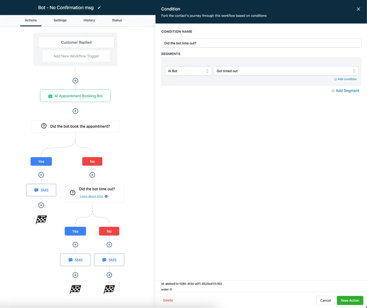 2. Bot hat die Zeitüberschreitung erreicht:Der Termin wurde nicht gebucht, da der Interessent nicht auf die Aufforderungen des Bots reagiert hat.