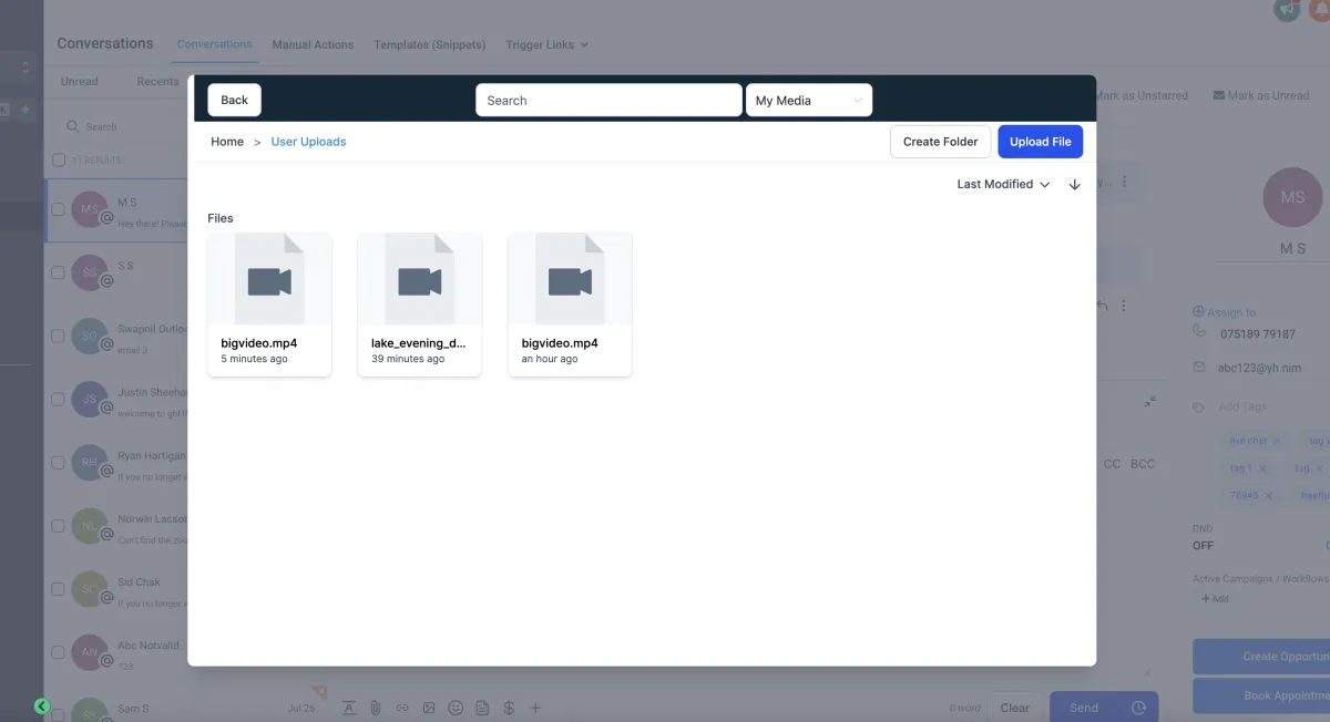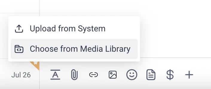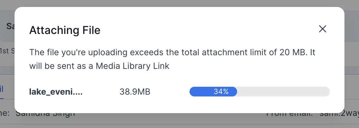 Das Verwalten von Anhängen war noch nie so einfach. Mit unserer neuen Funktion können Benutzer direkt große Anhänge von ihren Geräten hochladen. Darüber hinaus werden alle Dateien in SMS und solche, die das Anhangslimit für E-Mails (20MB) überschreiten, nahtlos und automatisch in die Medienbibliothek hochgeladen. Diese Anhänge werden als Links zur Medienbibliothek hinzugefügt, was den Prozess vereinfacht und sicherstellt, dass nichts zurückbleibt.