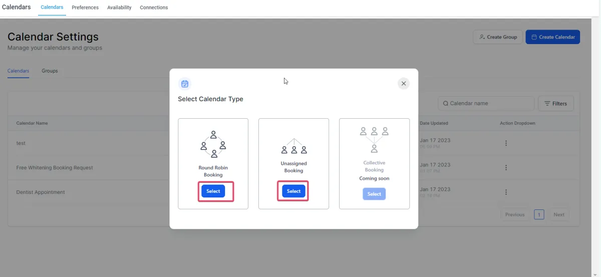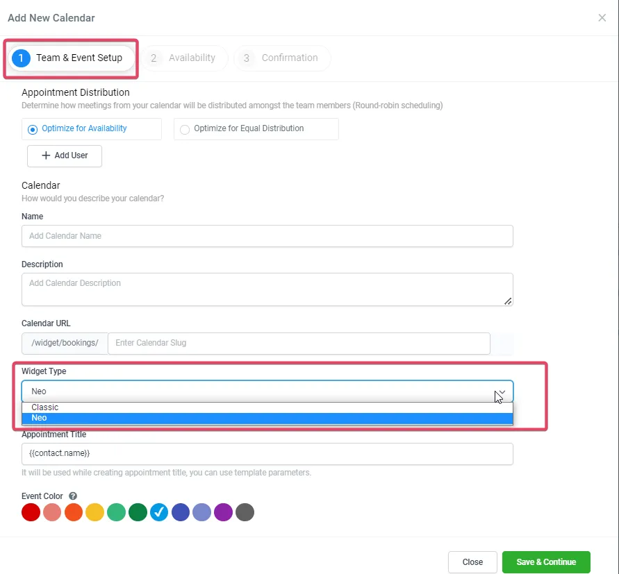 Die Buchung von Terminen wurde jetzt interaktiver gestaltet. Es besteht jetzt die Möglichkeit, zwischen dem klassischen Widget-Typ und dem Neo Widget-Typ zu wählen. Sie können den Widget-Typ auswählen, wenn Sie einen Termin für einen neuen Kalender erstellen oder einen bestehenden bearbeiten. Benutzer können außerdem benutzerdefinierte Kalender-URLs im Typ "Nicht zugewiesener Kalender" konfigurieren. Dies ermöglicht es Benutzern, eine benutzerdefinierte Kalender-URL zu ihrem Kalendereintrag hinzuzufügen, um ihn einzigartig und auf ihr Geschäft oder den Termin selbst bezogen zu machen. Das Verschieben von Kalendern in Gruppen und das Deaktivieren von Gruppen sind einige zusätzliche Veröffentlichungen im Rahmen dieser Funktion.