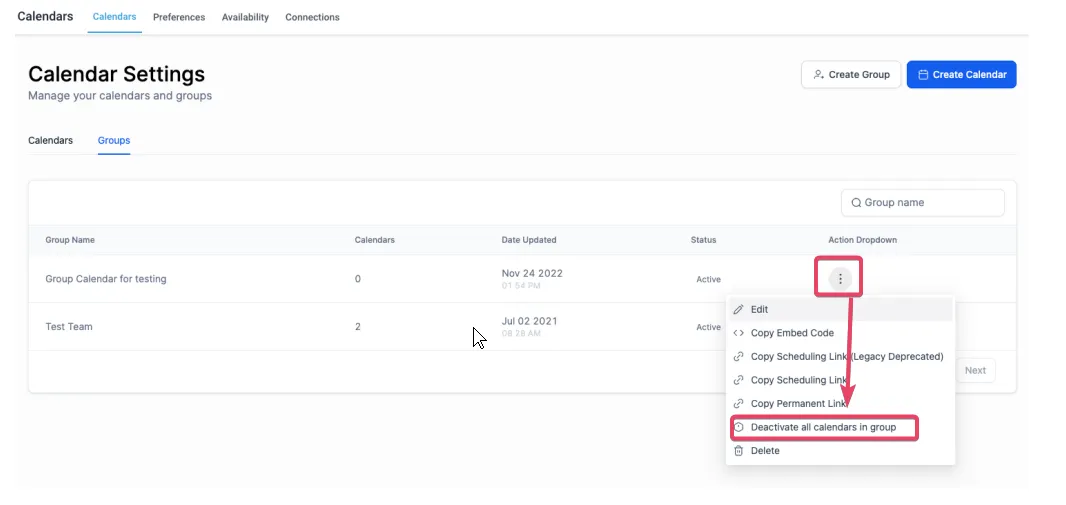 2. Sie können nun eine neue Option sehen: „Alle Kalender in der Gruppe deaktivieren“.