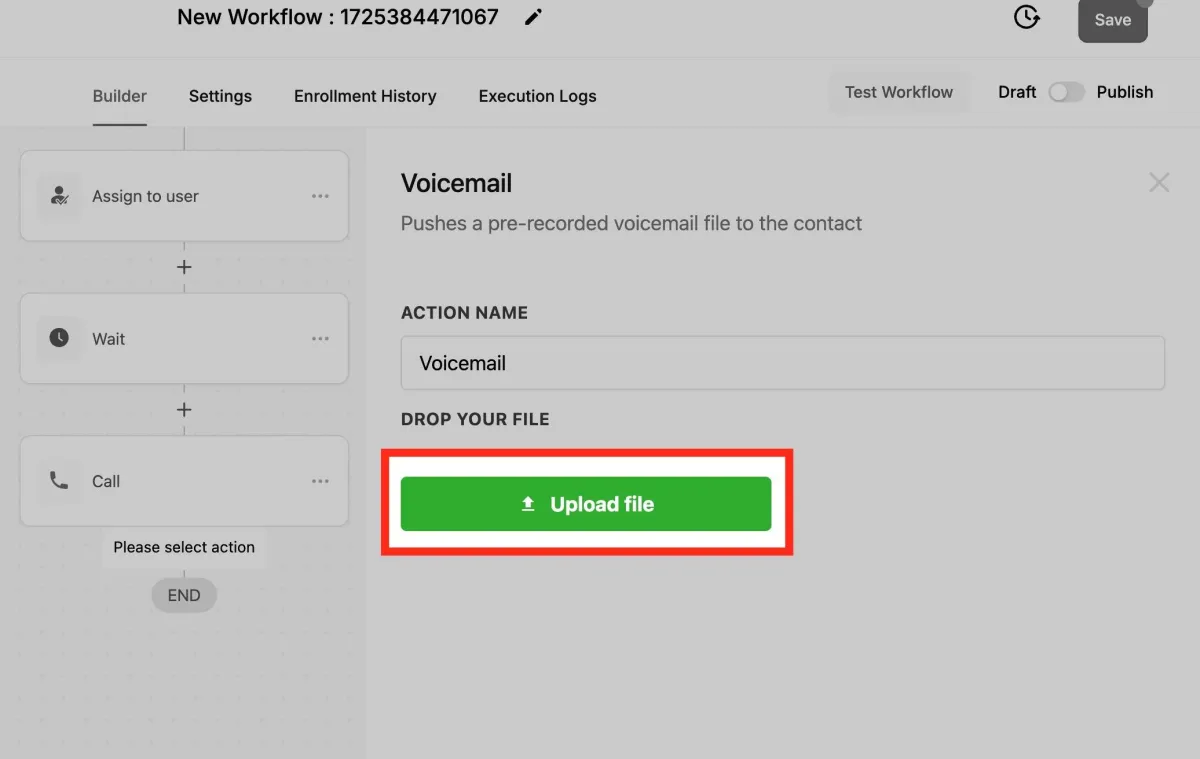 3. Zurück zur Pilotly.io-Voicemail-Kampagne/zum Pilotly.io-Workflow hochladen