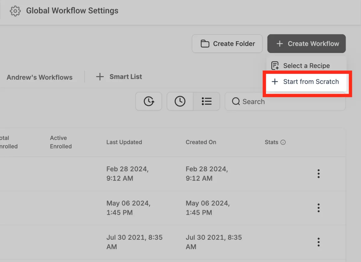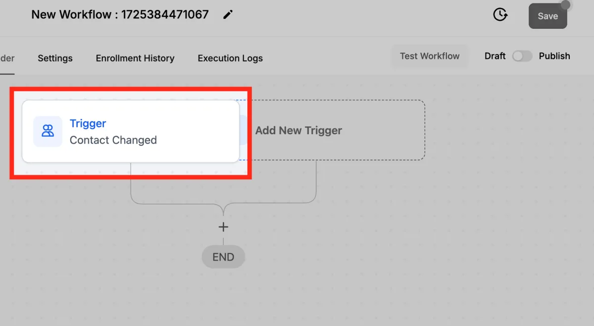 Wählen Sie einen Workflow-Trigger für Ihre Anruf-/Voicemail-Drop-Aktion. In diesem Beispiel haben wir den Trigger „Kontakt geändert“ verwendet.