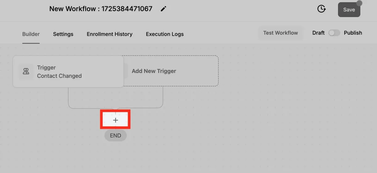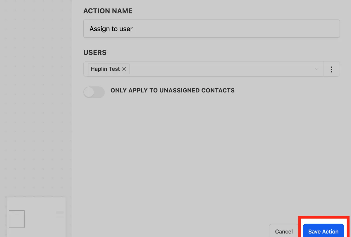 Vergessen Sie nicht, die Aktion zu speichern , bevor Sie zur Seite des Workflow-Builders zurückkehren.