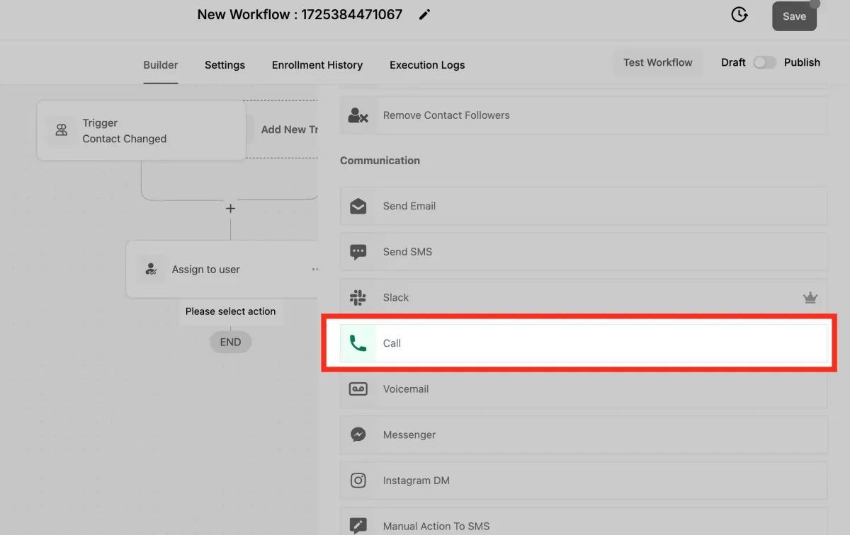 Fügen wir die Aktion „Anrufen“ hinzu. Klicken Sie einfach auf die Schaltfläche „+“ und wählen Sie die Aktion „Anrufen“ aus .