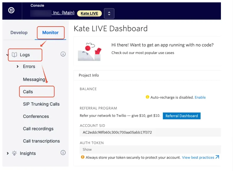 Fügen Sie die Account SID hier ein und klicken Sie darauf:
