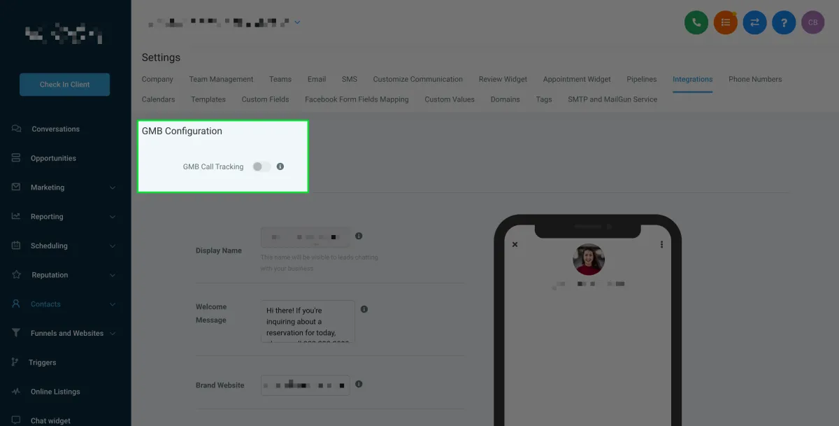 Wenn Sie die GMB-Anrufverfolgung aktivieren, tritt Folgendes ein: