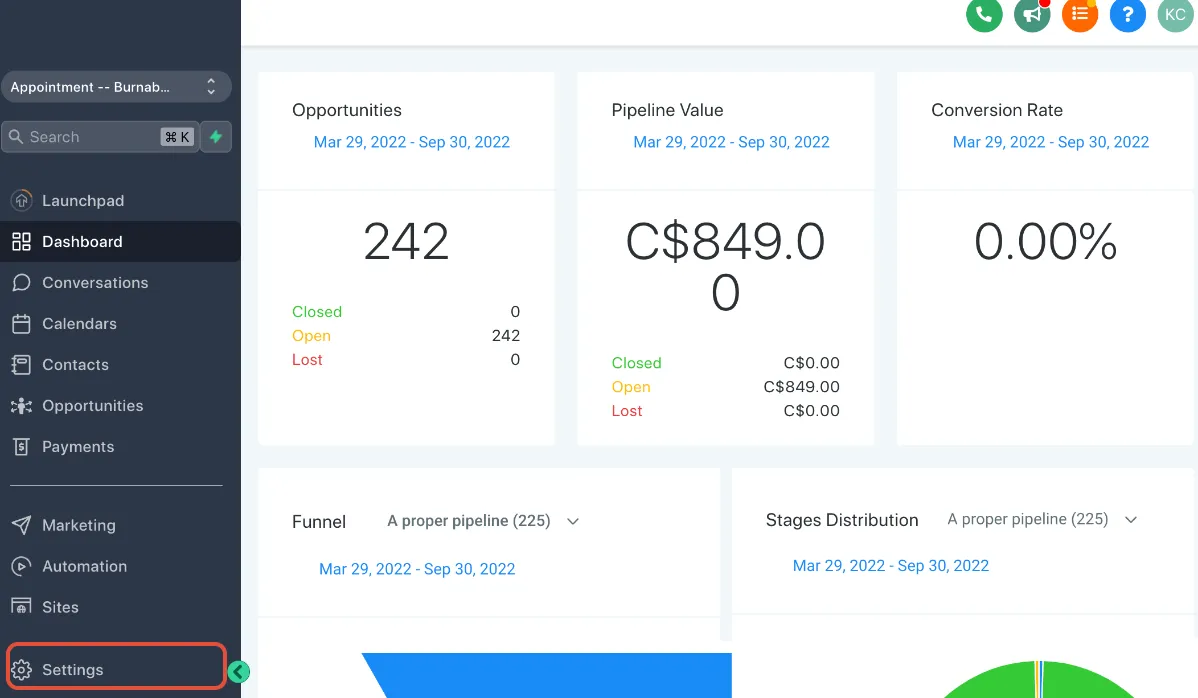 Sobald Sie im Unterkonto sind, klicken Sie auf Einstellungen (unten links)