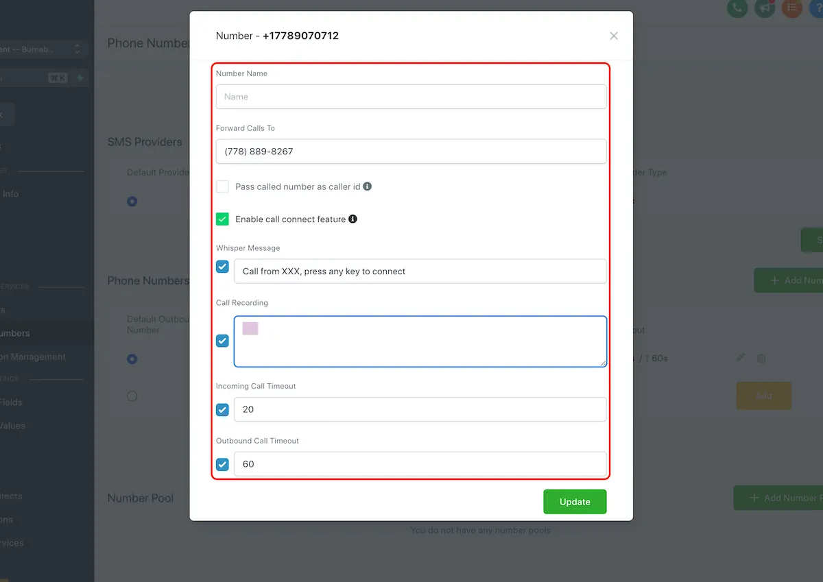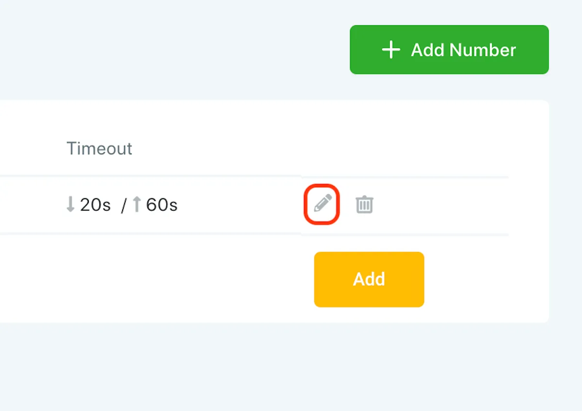 Klicken Sie auf das Bearbeiten-Symbol neben der Twilio-Nummer, für die Sie die Anrufaufzeichnung aktivieren möchten.
