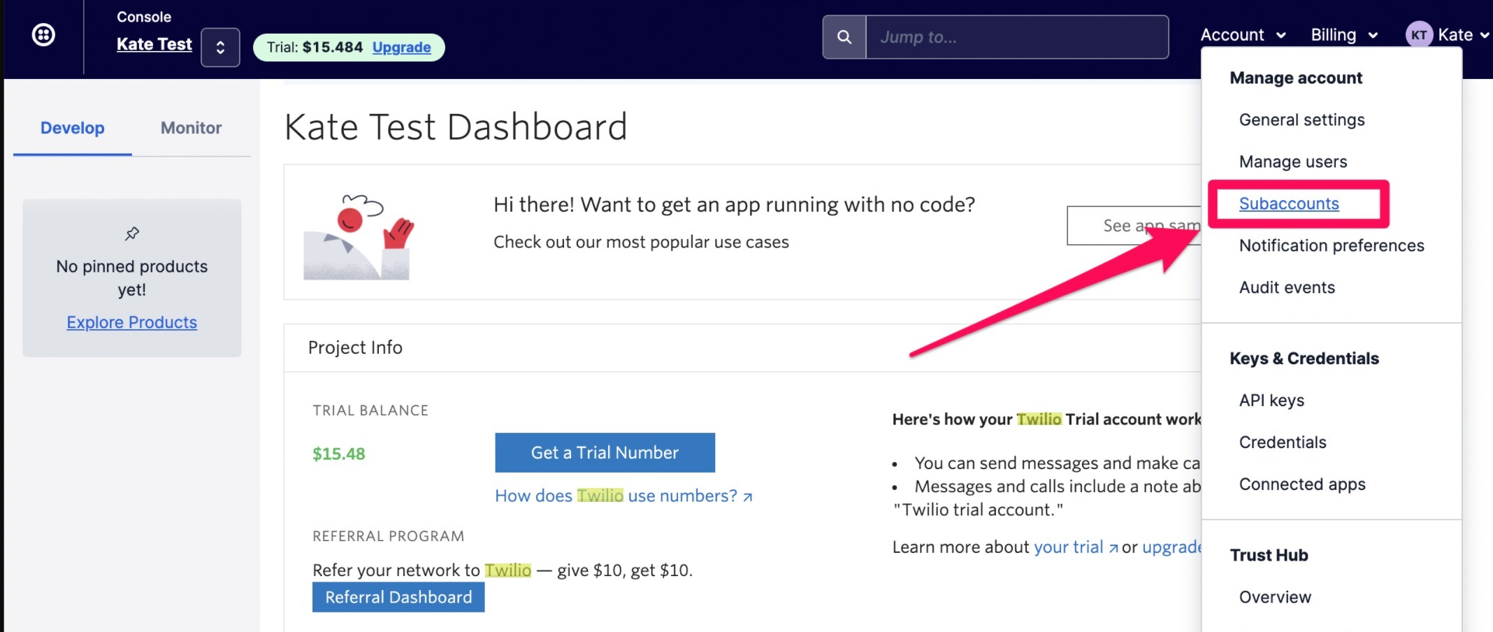 Um Anrufe aufzuzeichnen, muss jeder pilotly-Standort über ein entsprechendes Twilio-Unterkonto verfügen. Wenn Sie Ihre Haupt-Twilio-SID und Authentifizierungsschlüssel für ein Unterkonto verwenden, werden die Anrufe nicht aufgezeichnet.