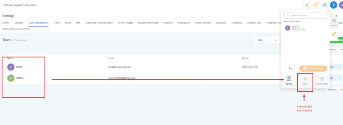 Daher zeigen wir für beide Übertragungen die Benutzer und die Weiterleitungsnummern unter Einstellungen->Teamverwaltung an..