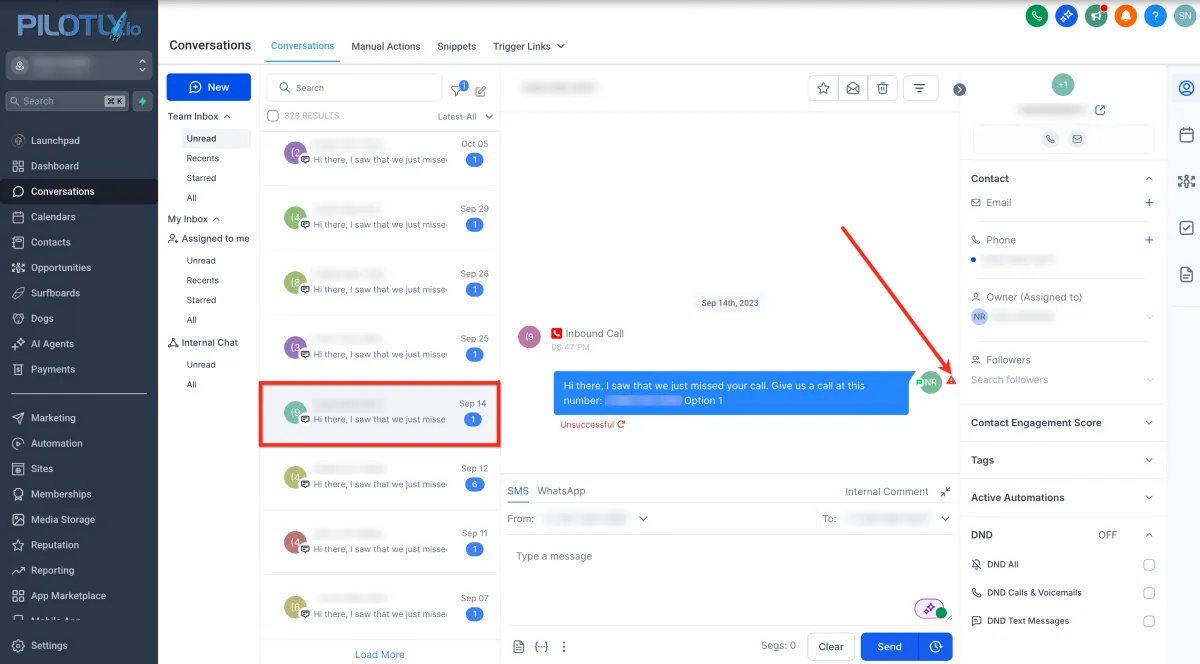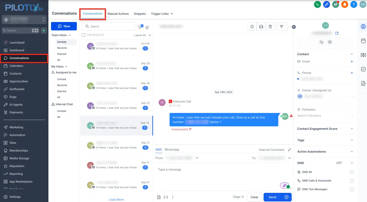 Klicken Sie in Ihrem Pilotly.io-Konto auf die Registerkarte „Konversationen“ .