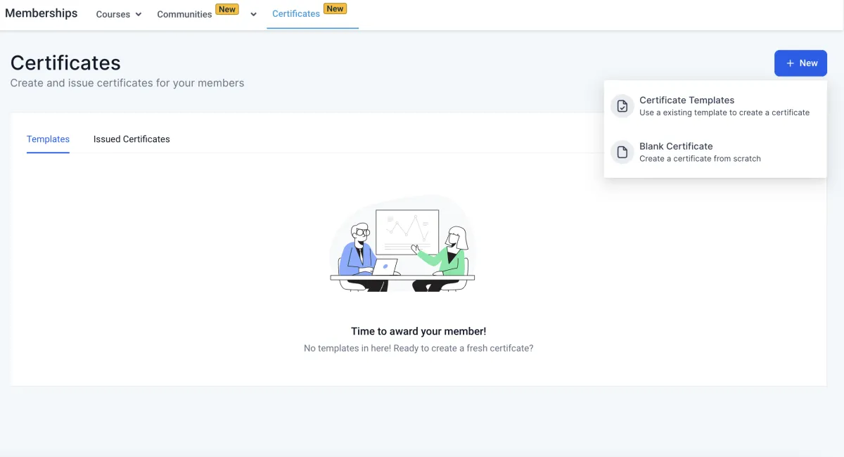 Wir freuen uns, Zertifikate vorzustellen, eine fantastische Funktion, die dazu dient, die Leistungen der Nutzer in Ihrer Gemeinschaft anzuerkennen und zu feiern. Mit Zertifikaten können Sie personalisierte Zertifikate erstellen und an Ihre Nutzer ausgeben. In dieser ersten Version haben wir uns darauf konzentriert, das Ausstellen von Zertifikaten für den Abschluss von Kursen zu vereinfachen. So können Sie beginnen: