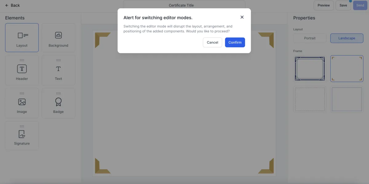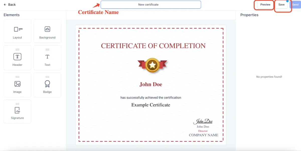 >Bevor Sie eine Vorlage speichern, geben Sie einen relevanten Namen für Ihr Zertifikat im oberen Bereich ein