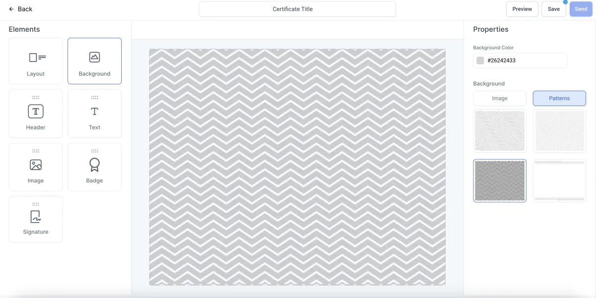 >Um ein Muster als Hintergrundbild auszuwählen, klicken Sie auf Muster und wählen ein Muster. Wählen Sie weiterhin die Farbe des Musters