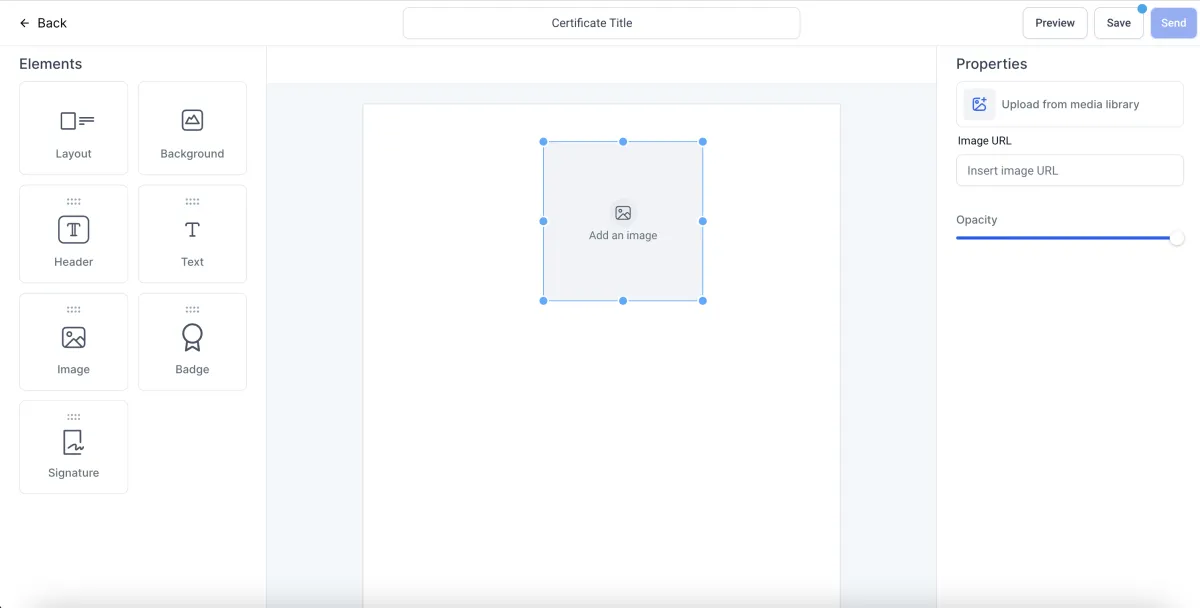 >Um ein Bild hinzuzufügen, ziehen Sie das Bildelement in Ihre Vorlage