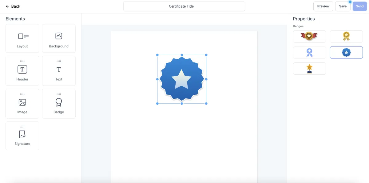 >Wählen Sie ein Abzeichen aus den Optionen, indem Sie darauf klicken