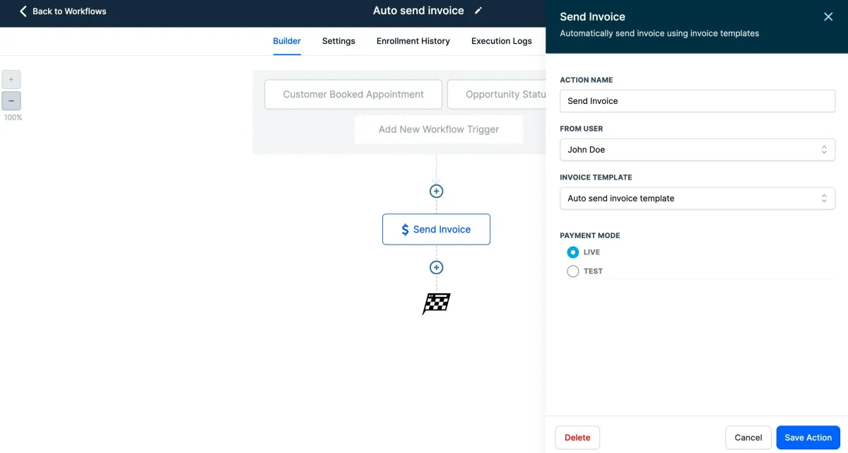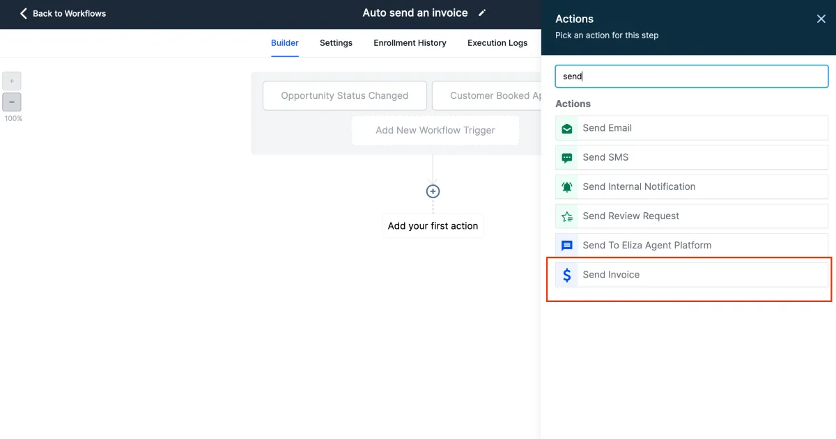 >Dies erfüllt viele Anwendungsfälle, wie das Senden einer Rechnung, nachdem ein Termin gebucht wurde, der Status einer Gelegenheit geändert wurde, ein Tag an einen Kontakt angehängt wurde oder ein anderer Auslöser vorhanden ist.