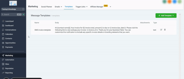 Marketing>Vorlagen, um SMS-Vorlagen zu erstellen..