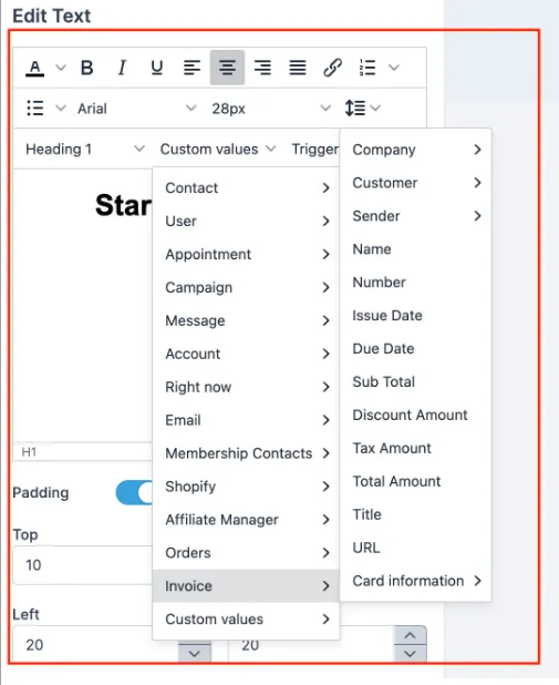 Diese neue Funktion ermöglicht es Unternehmen, E-Mail- und Textbenachrichtigungen für die Rechnungsstellung zu erstellen, anstatt die standardmäßigen des Systems zu verwenden. Sie können auch auswählen, welche Benachrichtigungen gesendet werden sollen, und Informationen wie Kundendetails und Rechnungsbetrag hinzufügen.