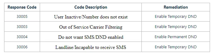 2. Wenn wir einen dieser Fehlercodes von Twilio erhalten: 30003, 30004, 30005, 30006