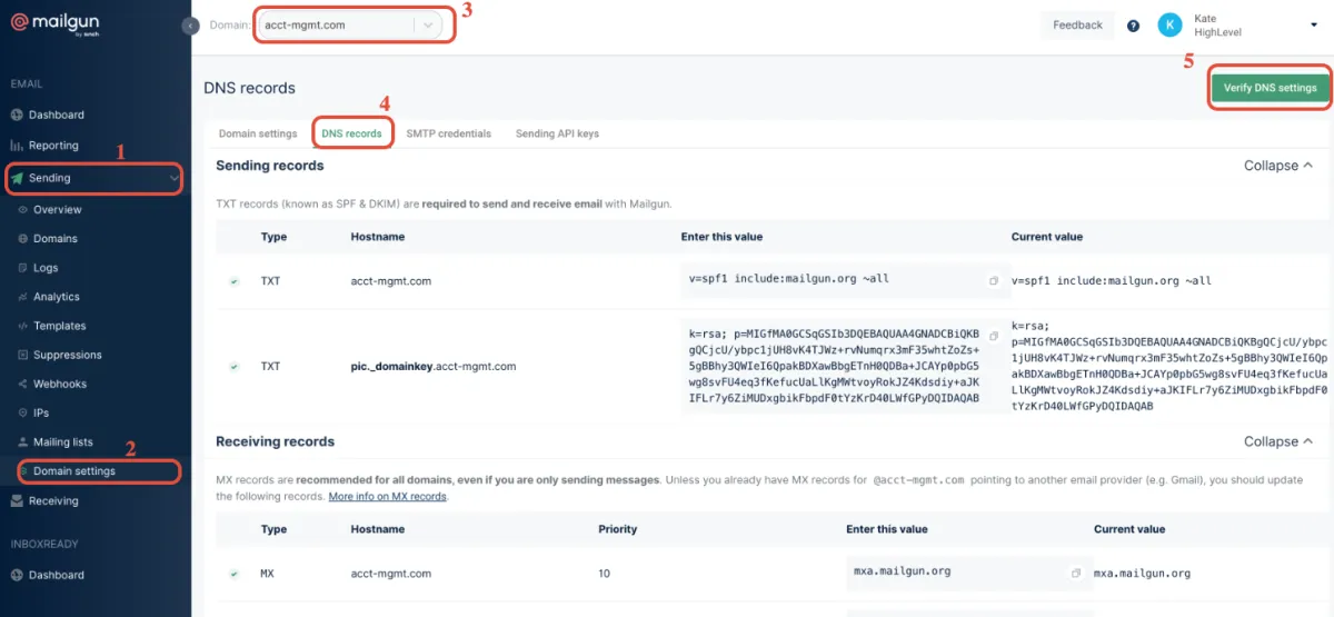Here are some steps you can take to fix this issue based on your current Mailgun sending domain: