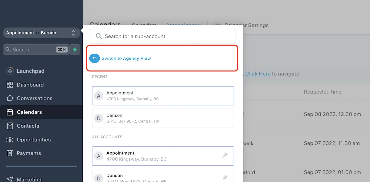 1. Klicken Sie auf Zur Agenturansicht wechseln