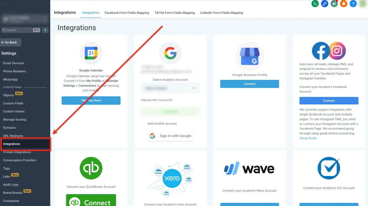 Scrollen Sie in der linken Navigationsleiste der Einstellungen nach unten und klicken Sie auf Integrationen