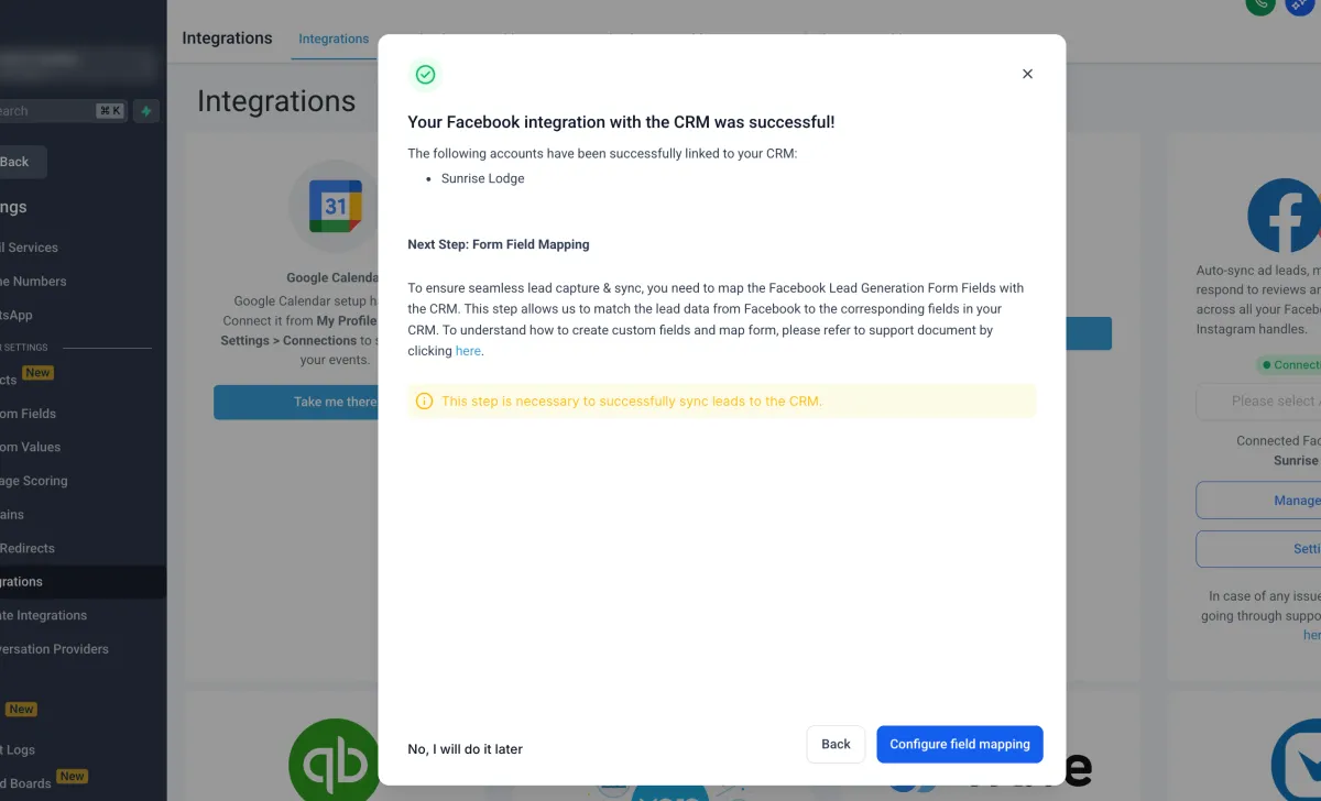 Formularfeldzuordnung : Richtet Facebook-Formularantworten an CRM-Feldern aus