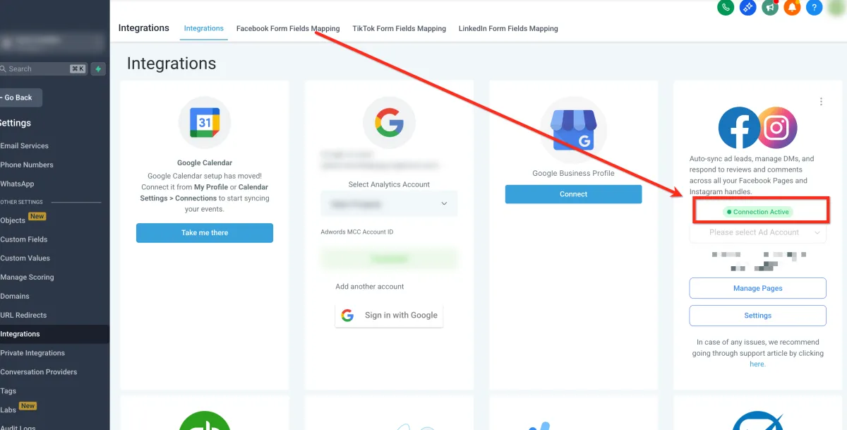 Die Facebook-Integration ermöglicht Ihnen die Verknüpfung Ihrer Facebook-Unternehmensseite und die direkte Synchronisierung von Leads mit einem Pilotly.io-Unterkonto. Diese Verbindung unterstützt Lead Ads, die über Facebook Instant Forms erstellt wurden, und ermöglicht leistungsstarke Automatisierung mit Pilotly.io Workflows. Sobald die Verbindung hergestellt ist, können Sie auch den Zugriff auf Ihr Instagram-Unternehmenskonto aktivieren, sofern dieses mit Ihrer Facebook-Seite verknüpft ist.