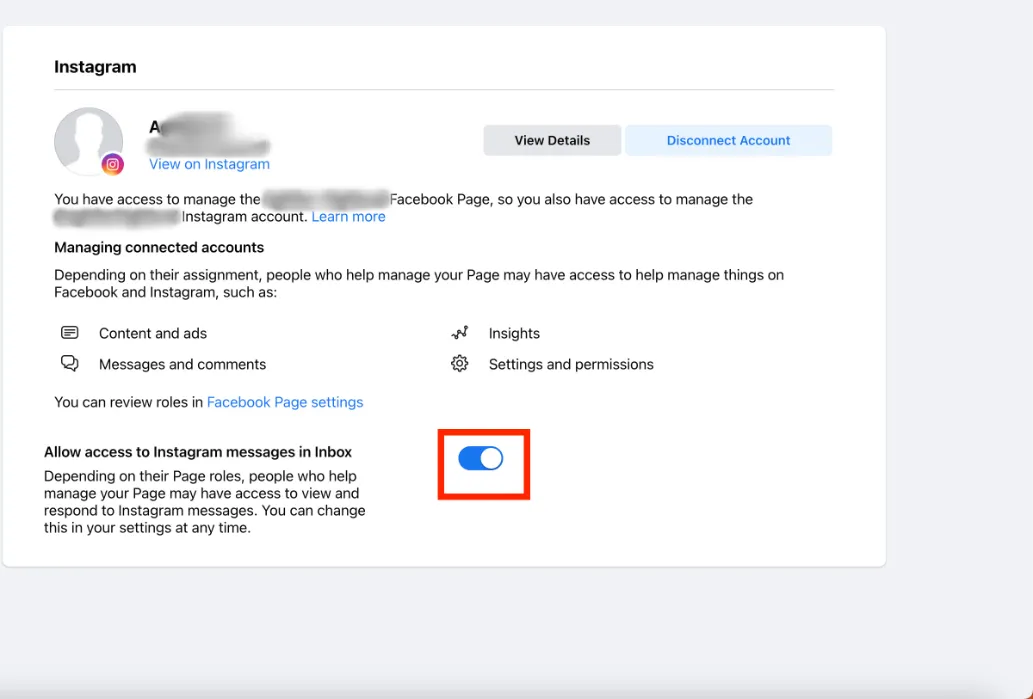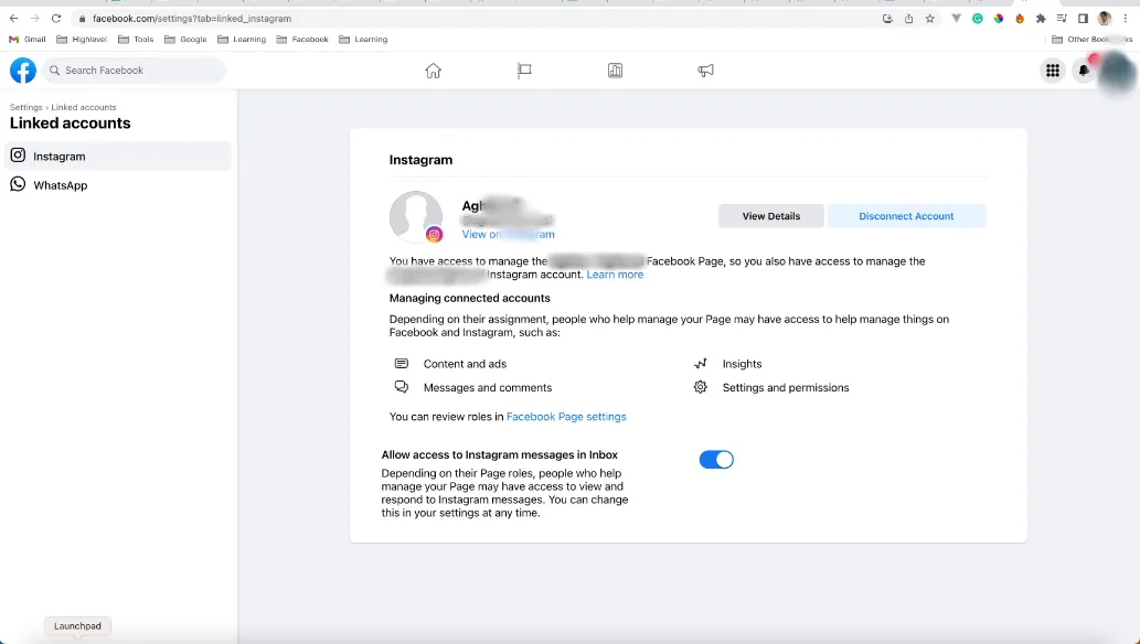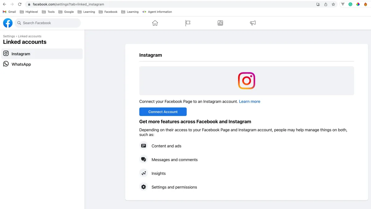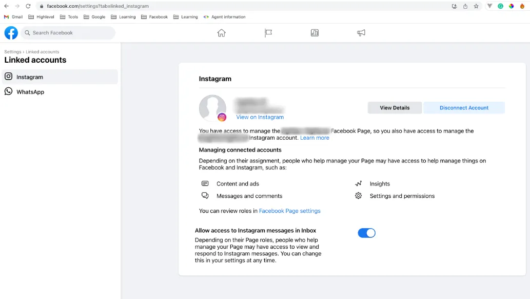 Überprüfen Sie, ob die Instagram-Seite mit der FB-Seite verbunden ist