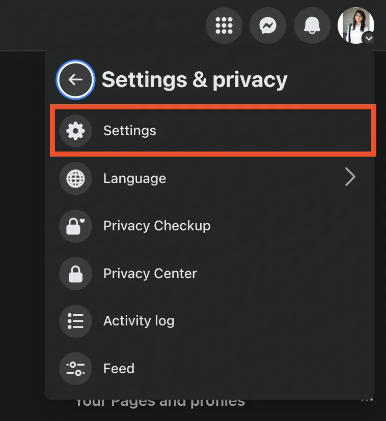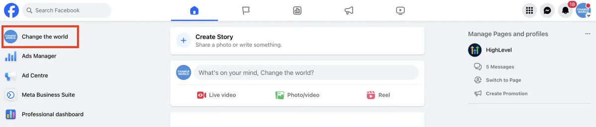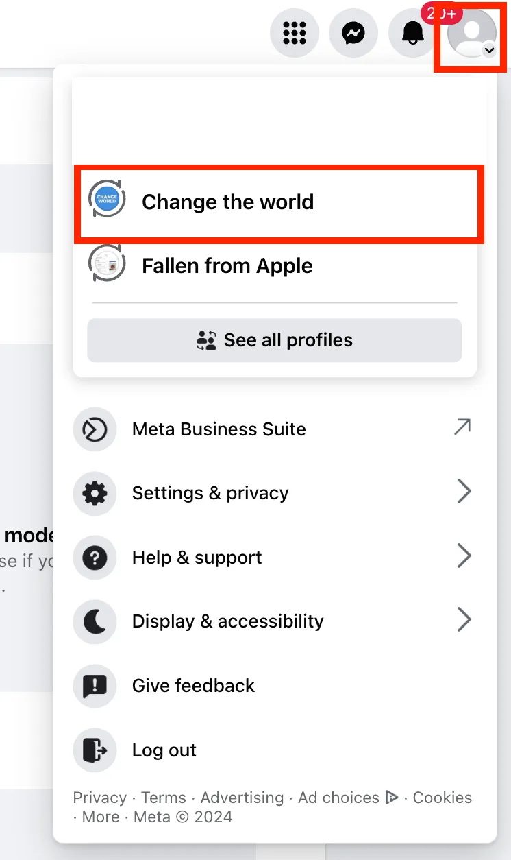 Schritt 2 - Gehen Sie auf Ihr Profilsymbol und klicken Sie auf Facebook-Seite