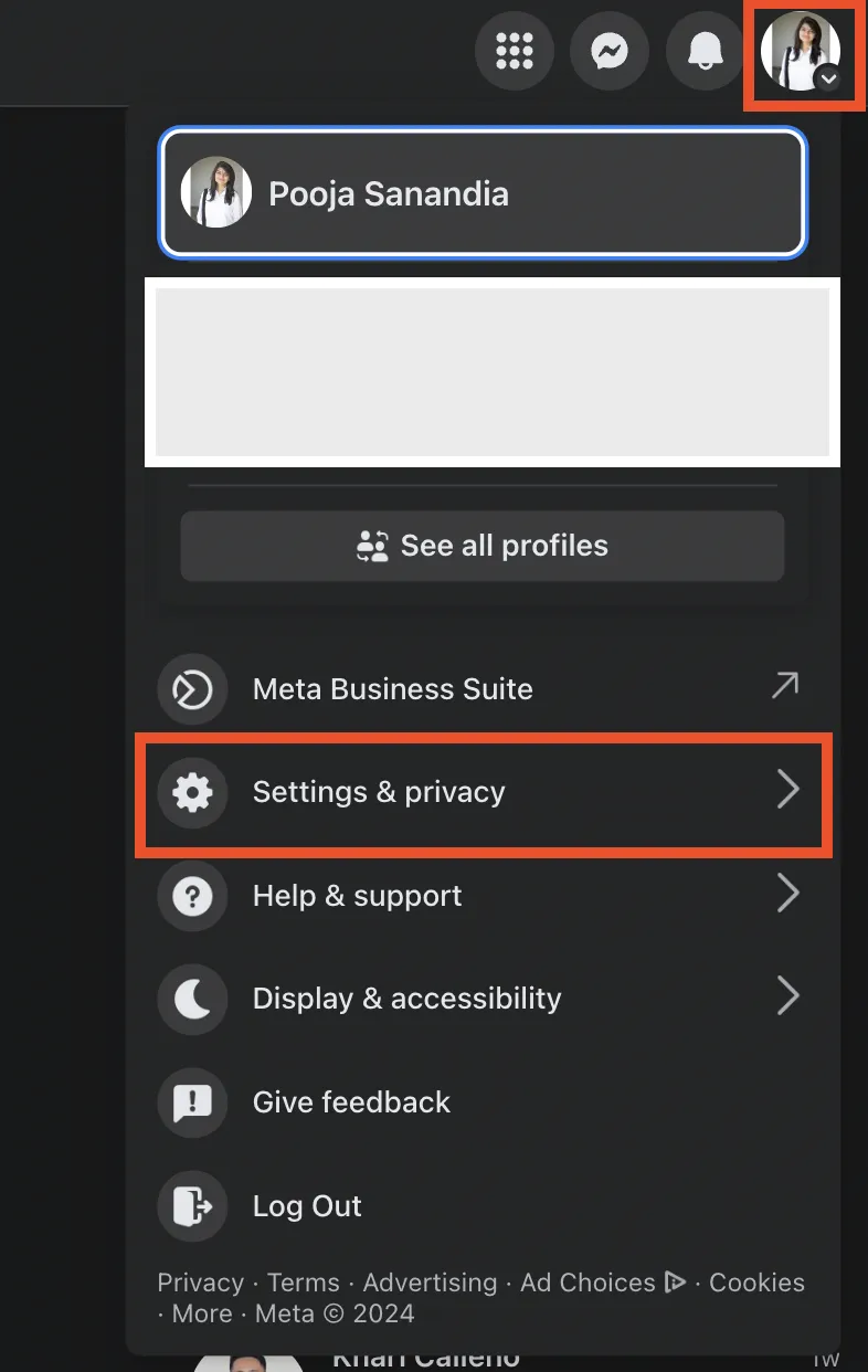 Schritt 2 - Navigieren Sie zu Ihrem Profilbild-Symbol auf der rechten Seite, klicken Sie auf Einstellungen und Privatsphäre