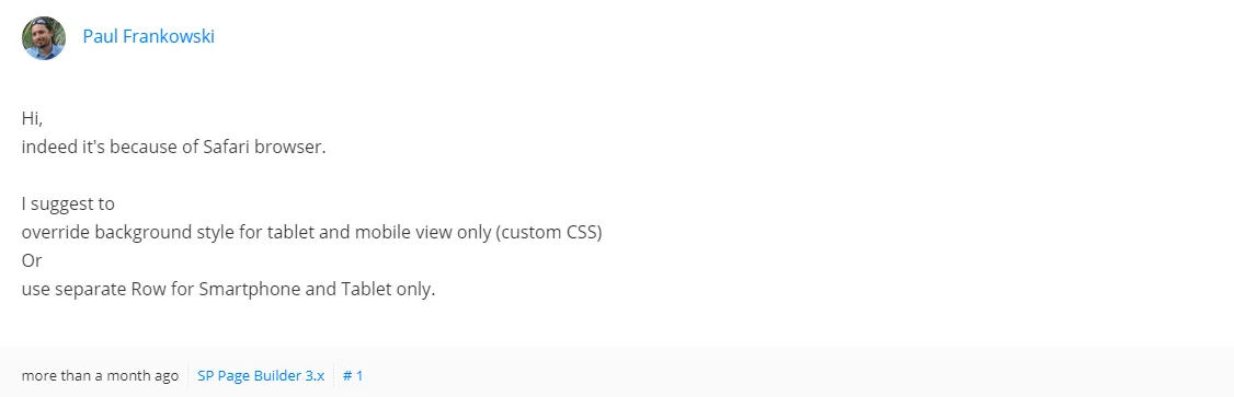Parallax-Bilder oder auch als feststehende Hintergrundbilder bekannt funktionieren auf iPhones und iPads nicht richtig. Dies ist eine Einschränkung von iOS, die das Javascript für diese Animation blockiert. Auf Android-Handys oder -Tablets, Chromebooks und Windows-Tablets funktioniert dies einwandfrei.