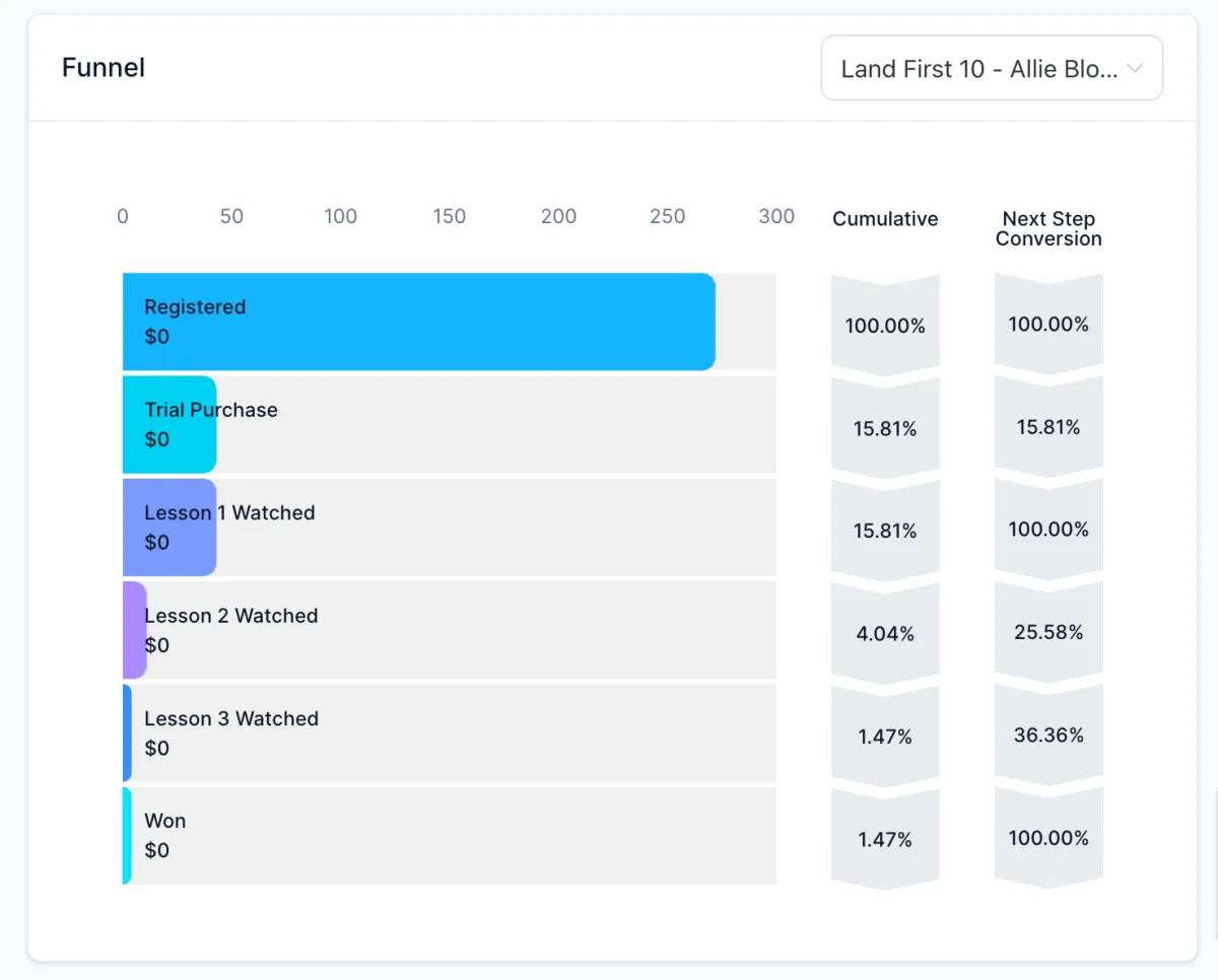 Sie können ganz einfach zwischen verschiedenen Funnels wechseln, indem Sie das Dropdown-Menü verwenden, das in dem Widget bereitgestellt wird.
