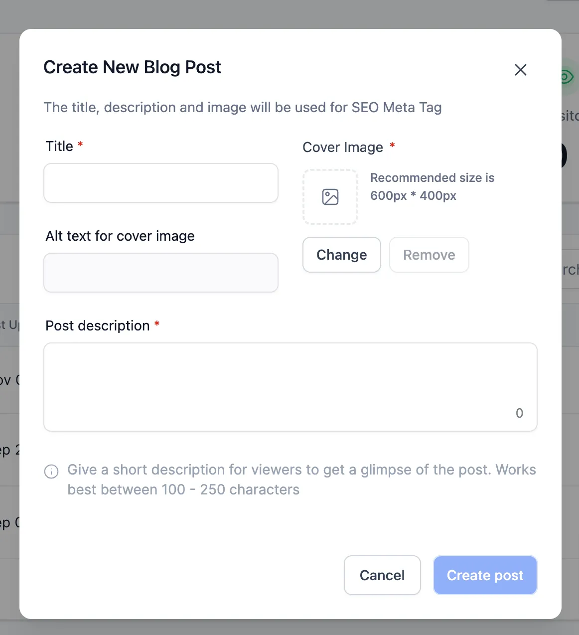 Kategorie, Schlüsselwörter, Autor und Slug können NACH der Veröffentlichung des Blogs NICHT aktualisiert werden. Die Entwickler arbeiten an einer Lösung, die bald veröffentlicht wird.