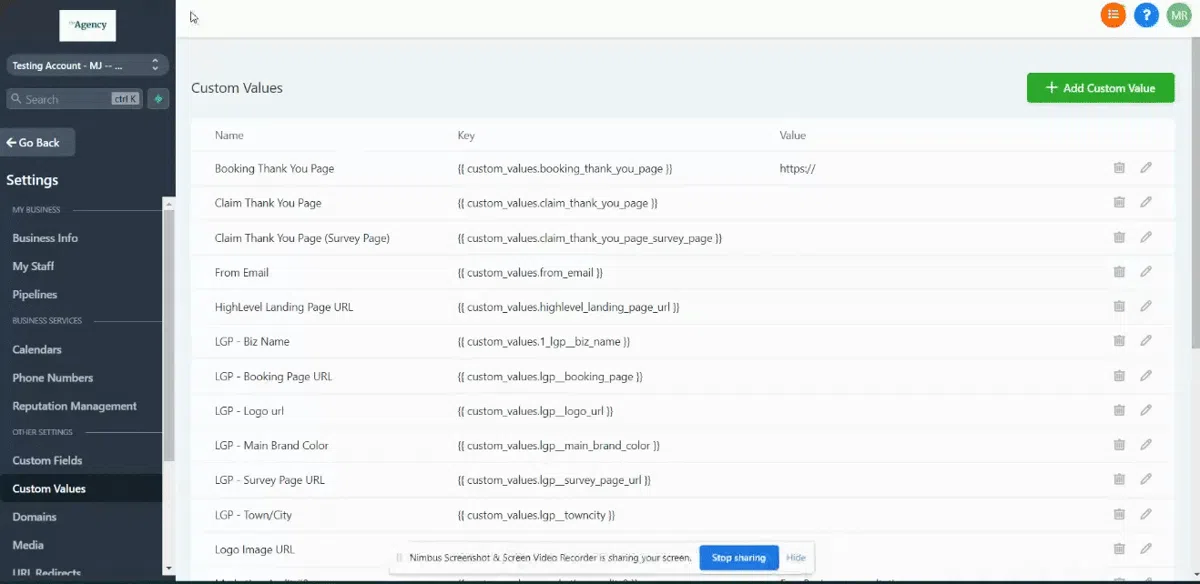 Gehen Sie zu den Standorteinstellungen > Benutzerdefinierte Werte > + Benutzerdefinierten Wert hinzufügen > MMS-URL eingeben