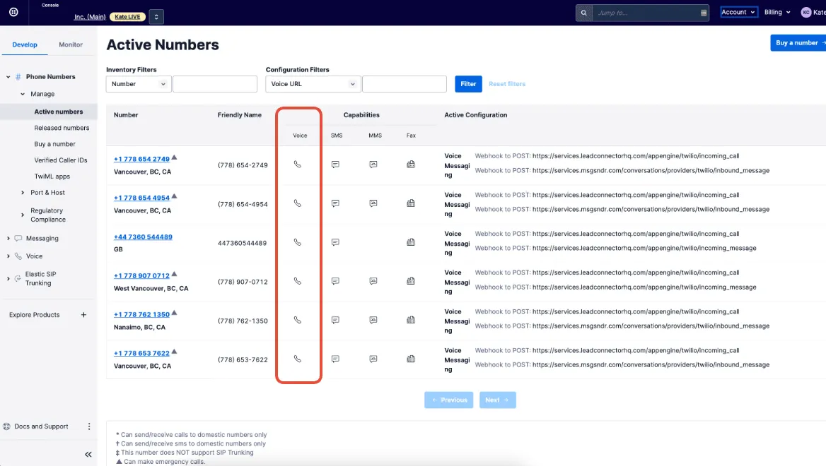 6. Zuerst stellen wir sicher, dass die Twilio-Nummer sprachfähig ist: