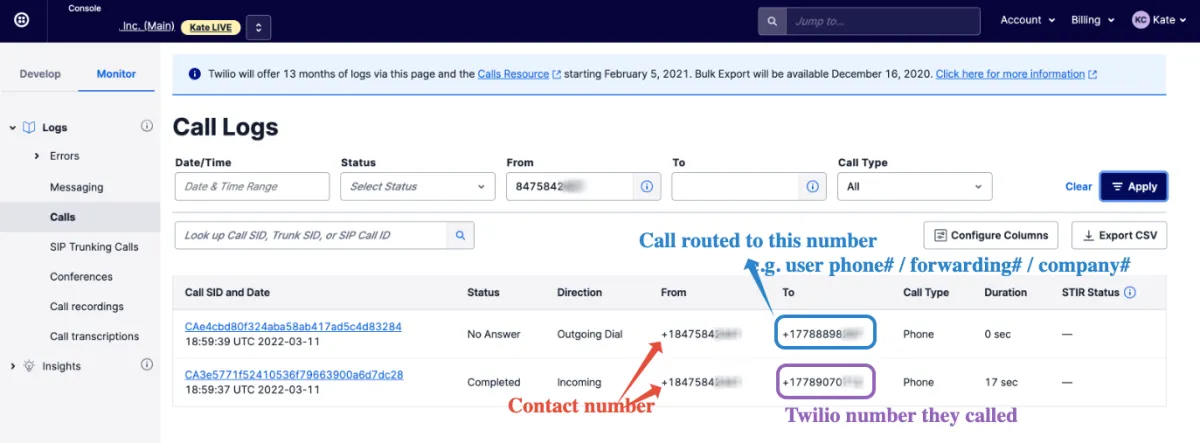 Wie man Protokolle für einen bestimmten Anruf in Twilio überprüft.