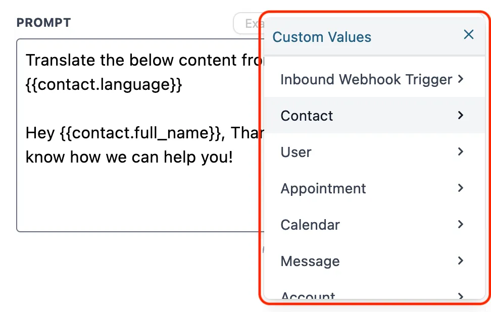 Dynamische Aufforderungen können durch die Verwendung benutzerdefinierter Werte erstellt werden.