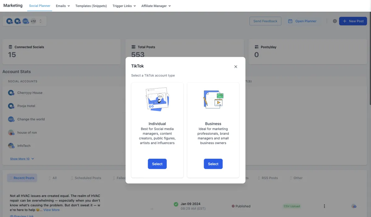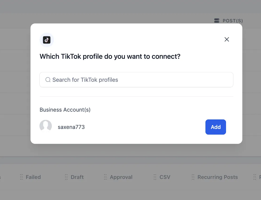 Schritt 5: Wählen Sie als nächstes das TikTok-Konto für den Social Planner