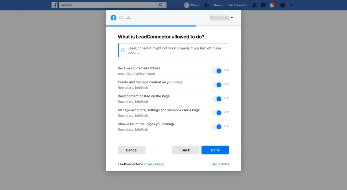 Schritt 3. Berechtigungen zum Abrufen von Facebook-Seite(n) erteilen