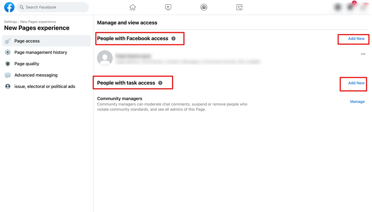 Facebook bietet zwei Arten von Seiten an - die klassische Seite und das neue Seitenerlebnis. Wenn Sie die klassische Seite verwenden, folgen Sie bitte dem oben genannten Ablauf. Wenn Sie das neue Seitenerlebnis nutzen, müssen Sie Zugang zu folgender Rolle hinzufügen: