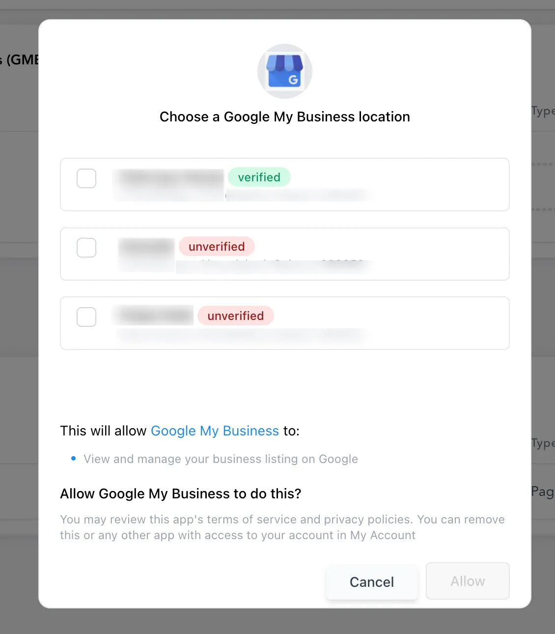 Schritt 4: Wählen Sie die GMB-Standorte für den Social Planner