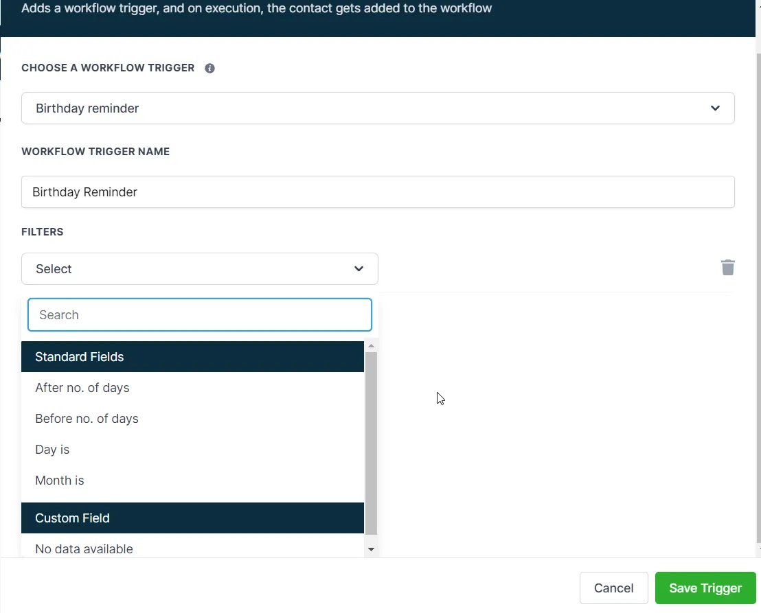 Das Einrichten eines Geburtstagserinnerungs-Workflow-Auslösers umfasst die folgenden Schritte: