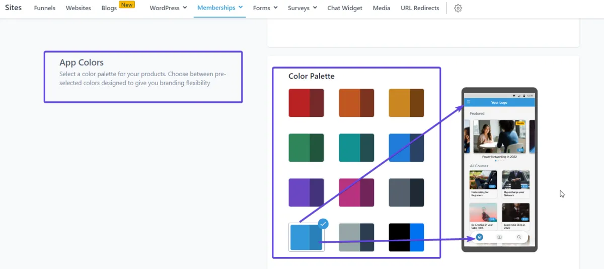 Unter App-Farben können Sie das Farbschema Ihrer App anpassen: