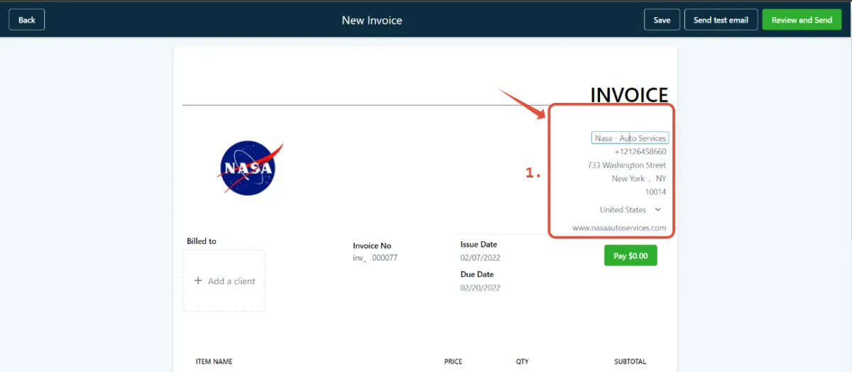 Schritt 1: Bearbeiten Sie die "Absenderinformationen", indem Sie einfach auf den Text klicken, was Ihnen erlaubt, diese Informationen zu bearbeiten.