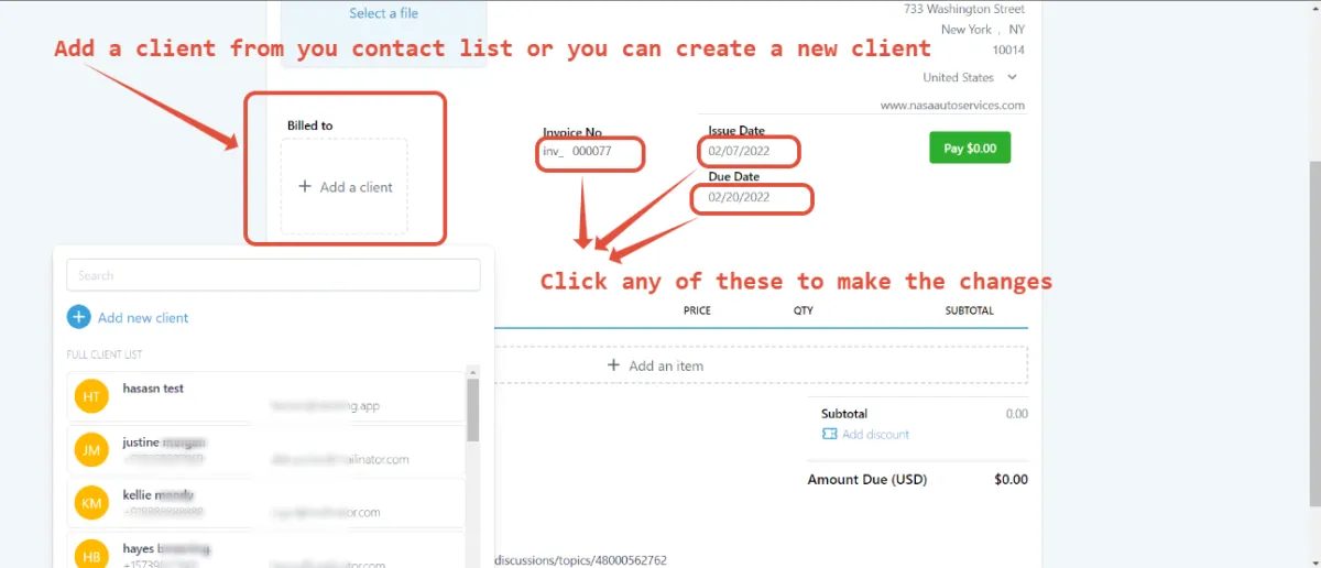Schritt 3: Dann können Sie den Kunden hinzufügen und die Rechnungsnummer, Ausstellungs- und Fälligkeitsdaten bearbeiten.