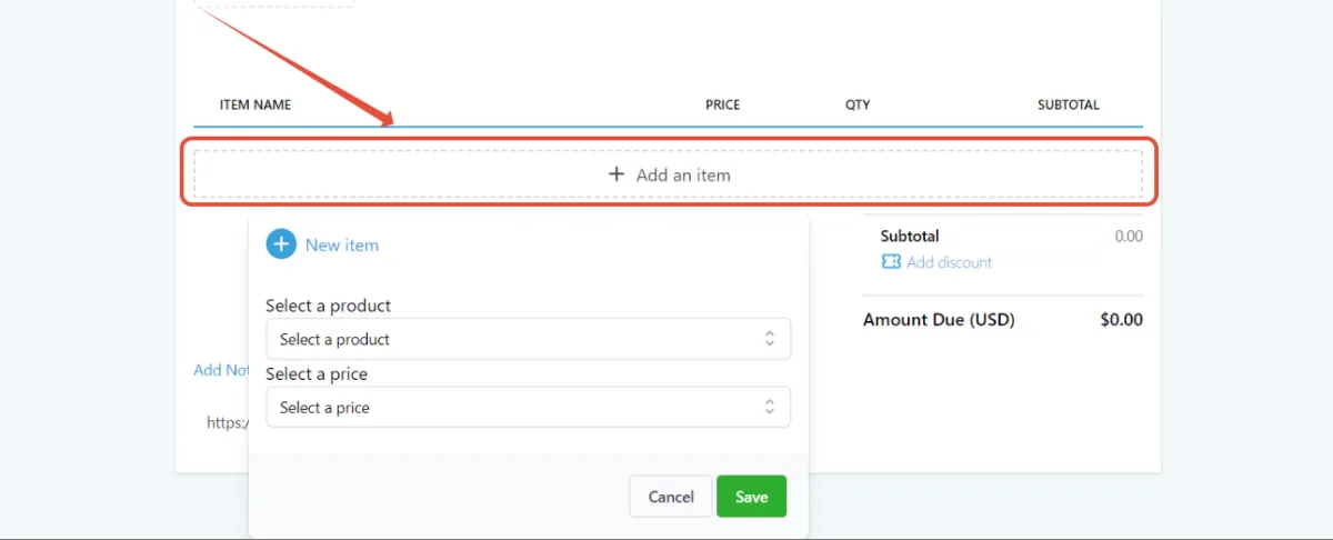 Schritt 4: Klicken Sie auf "Ein Element hinzufügen", um die Produkte hinzuzufügen, die Sie im Tab "Produkte" erstellt haben.
