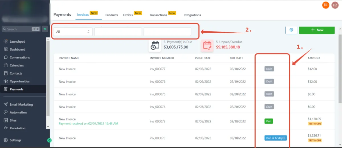 Schritt 2: Sie können die Rechnungen auch nach Status und Zeitraum filtern.